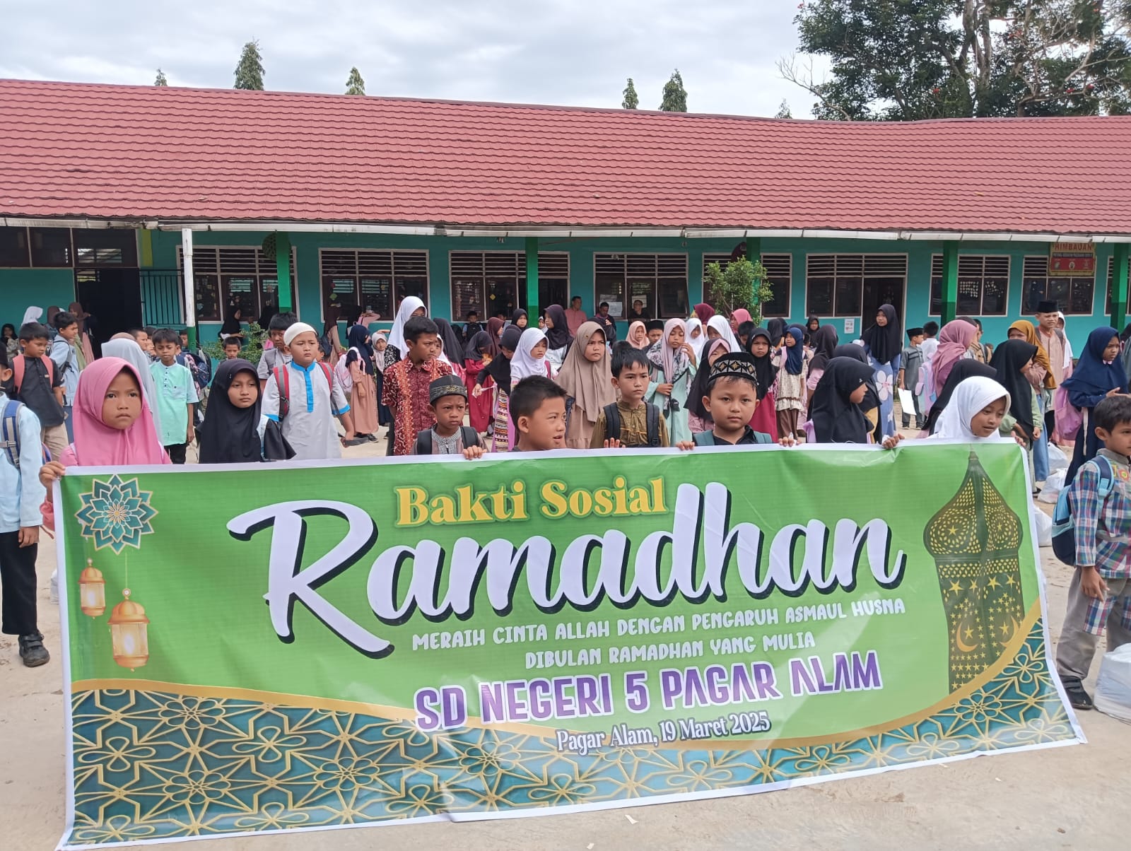 Kepala Sekolah SDN 5 Pagaralam Deslin Herlianti,S.Pd, menuturkan kegiatan ini dilakukan dalam rangka bentuk kepedulian terhadap anak-anak yatim dan dhuafa di SD N 5, serta meraih keberkahan di bulan suci Ramadhan.