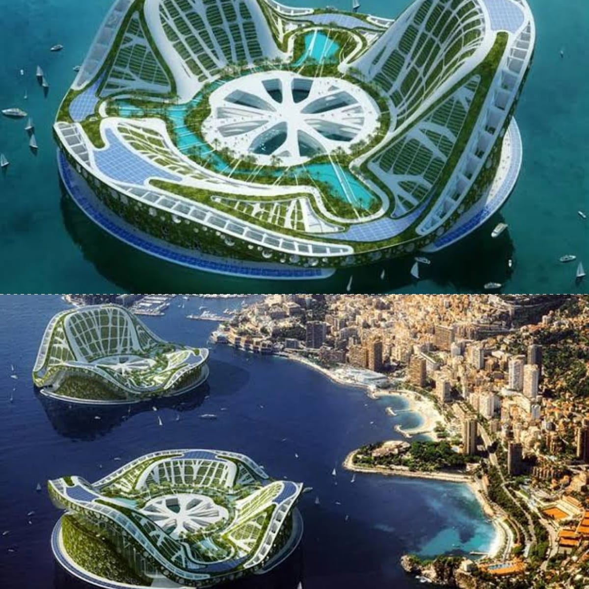 Konsep kota terapung biasanya dirancang dengan teknologi ramah lingkungan mulai dari panel surya turbin angin hingga sistem pengolahan limbah yang terintegrasi.