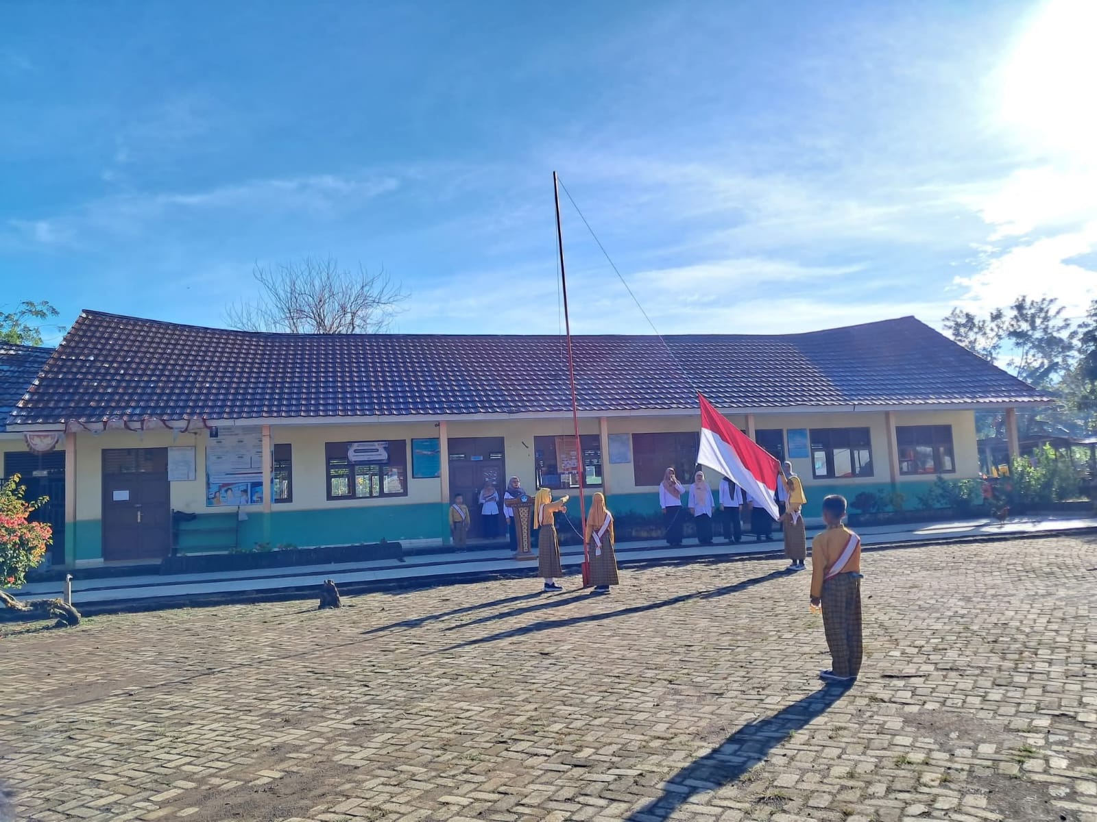 Dengan bendera Merah Putih berkibar megah, para siswa membentuk barisan rapi, menunjukkan disiplin dan kebersamaan yang luar biasa.