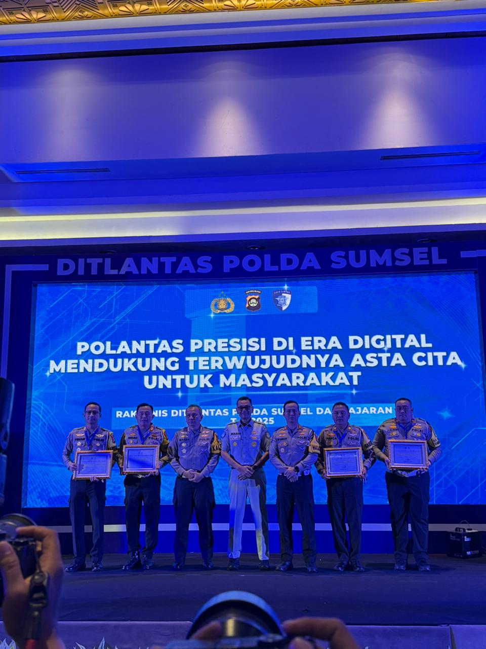 Penghargaan ini diterima langsung oleh Kasat Lantas Polres Pagar Alam, AKP Herman R. S.H., yang hadir bersama jajaran Satlantas Polda Sumsel.